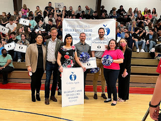 I can't remember a lot of my speech now but was sooooo glad that I had known for a few weeks and had time to prepare. I felt shaky but I think I sounded okay. I used to be terrified to speak on a microphone but after years of spirit assemblies, I did get over it. (But I also now delegated that job to my friend Kourtnee.) Also, since I already knew what was happening, I was able to give Kourtnee my phone to take photos and videos of everything. If you watch the youtube video, which I can't bring myself to do, it looks like I'm chewing gum. I do not chew gum at all but I had this weird chewing on nothing habit that came from wearing masks for so long and moving my jaw to adjust it. I don't do it anymore but of course it had to be on the once in a lifetime video. 😬 Golden Apple posted the video on their facebook and a random stranger commented that I shouldn't be chewing gum. So just had to clarify that I wasn't...and thanked him for his support. (I am a petty child.)